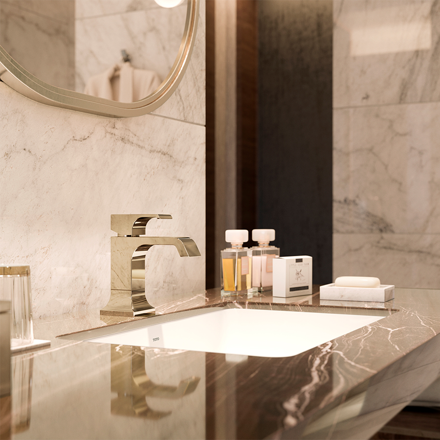 套房?jī)?nèi)使用的TOTO水嘴與超大橢圓形鏡子和吊燈等獨(dú)特的內(nèi)飾元素相協(xié)調(diào),展現(xiàn)出精致與優(yōu)雅,充滿吸引力。