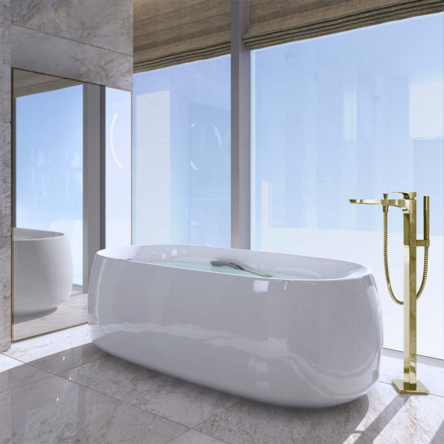 透過(guò)長(zhǎng)方形浴缸后面的落地窗,你可以看到心儀的藍(lán)天白云,享受沐浴在明亮陽(yáng)光下的清新之感。
