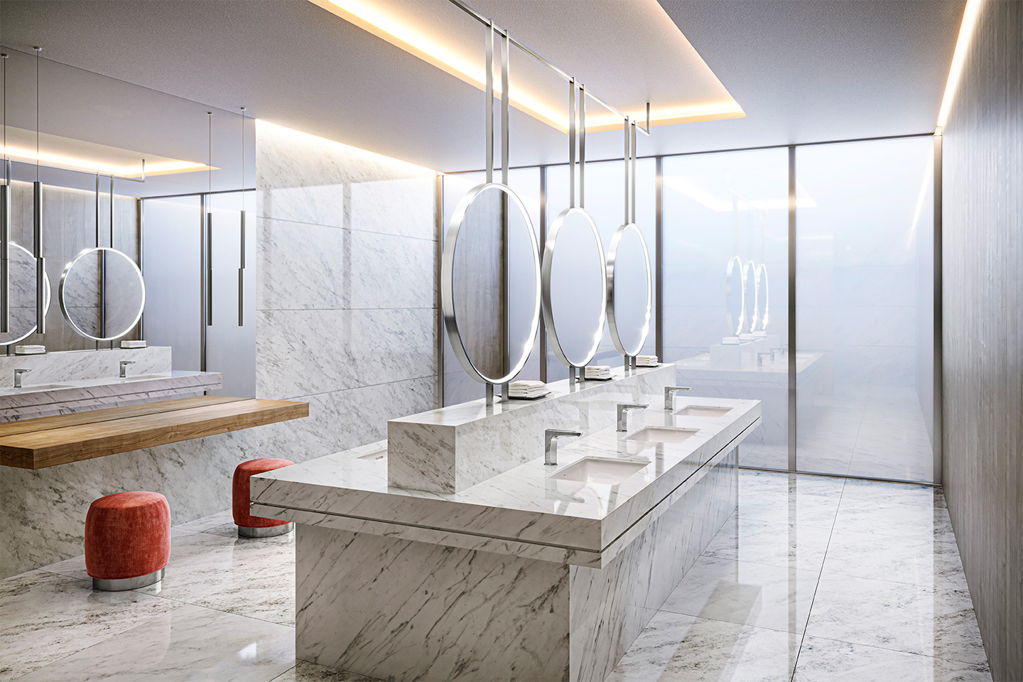 酒店客房也使用了相同的設(shè)計(jì)并采用非接觸式感應(yīng)水嘴。